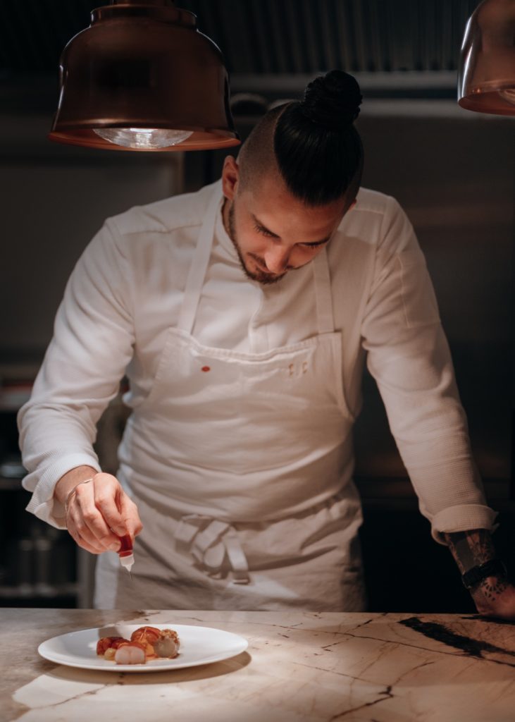 La surprise n’est pas un objectif en soi mais j’aime créer des contrastes qui réveillent le palais et attisent la curiosité. Quand une association semble improbable sur le papier mais trouve sens dans son équilibre ou dans l’écosystème dans lequel elle est servie, le plat raconte quelque chose. Cela permet de garder une cuisine vivante et d’éviter la routine. Que ce soit pour Polychrome ou mes restaurants, je veux que le client reparte avec quelque chose en tête ou dans son cœur. Une nouvelle expression apprise, un nouveau geste, un nouvel assaisonnement, une nouvelle saveur. Si le lendemain il a oublié son repas, je vois cela comme un échec.